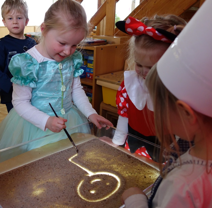 Wir starteten mit einem tollem Kasperle-Theater, bei dem die Gretel mit dem Kasperl sich verschiedene Berufe überlegten. Und zu dem Entschluß kamen, doch zuerst einmal in die Schule zu gehen. Die Kinder konnten an diesem Morgen selbst Tänzer, Modeschöpfer, Sandmaler und Gärtner sein. Das Programm erstreckte sich über eine Disco, Hüte basteln und einem Gärtnerlauf. Auch über das abweichslungsreiche Buffet der Eltern freuten sich die Kinder sehr. An diesem Vormittag hatten wir alle großen Spaß.
